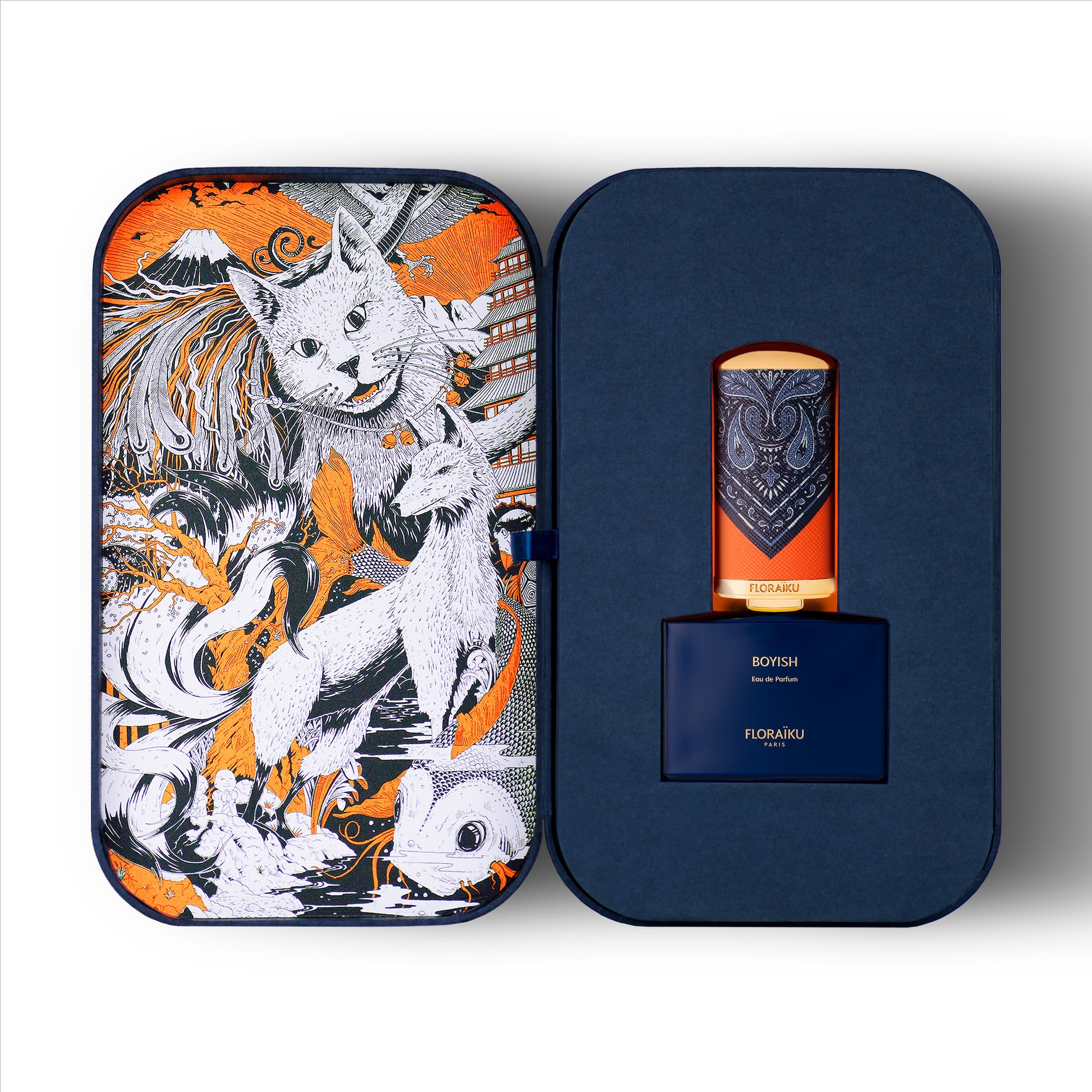 Citation du parfumeur : "Pour Boyish, les notes végétales prennent un nouveau visage avec l'intensité des bois. Les notes boisées texturées et les tons terreux et fumés de Vetiver Haïti Essence enveloppent le cœur floral, donnant à la composition une nouvelle identité boisée."