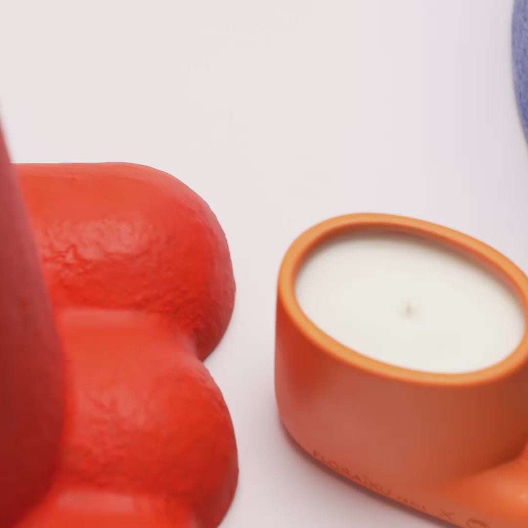 Sa patte s'est déclinée d'abord en tabouret, en pot et maintenant en bougie. Une figure de chat en guise de héros !