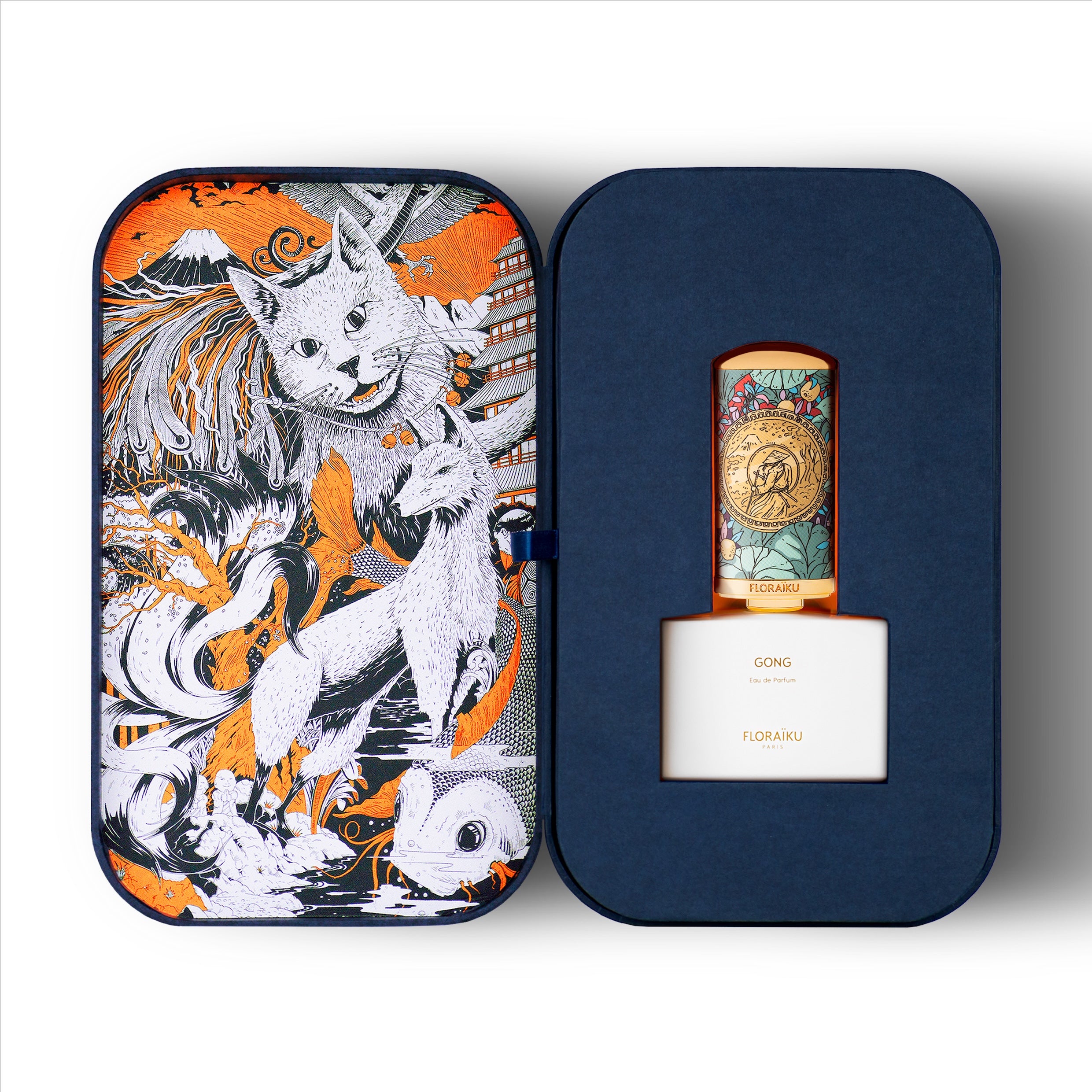 Citation du parfumeur: « Gong est une invitation à une gourmandise raffinée. Je l’ai imaginé comme un parfum délicat qui capture l’essence du Japon, avec une envolée subtile et pétillante de mandarine, de poivre rose et de yuzu. Une réminiscence réconfortante apparaît avec un dorayaki moelleux relevé d’une pointe de poivre noir. GONG est un ambré frais, sublimé par un sillage chaud et baumé de benjoin et de bois. »