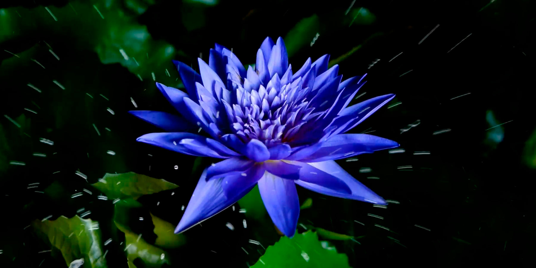 Un nénuphar en fleurs, celui du haïku du parfum, est si heureux de la pluie qu'il se joint à d'autres compagnons, dans une danse du coucher du soleil, partageant les nouvelles du temps.